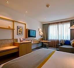 The Deluxe Room measure 31 sq.mt and come with Queen Bed, work desk and comfortable furnishings. We offer “Happy Hours” – Buy 1 and Get 1 on Selected Beverages from 1800 Hrs to 2000 Hrs everyday during evening